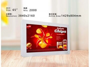 65-inch digital signage, ultra HD wall-mounted outdoor advertising display, pharmacy digital signage, cinema screen, beauty display, 3840x2160, brightness 2000.