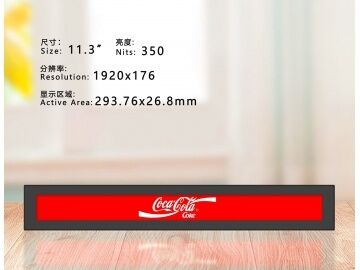 11.3-inch cutting screen, shaped screen, long strip screen, bar screen, 1920x176, brightness 350, price tag display, retail shelf signage, LCD shelf edge label.