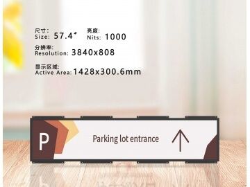 57.4-inch approximately 1/3 cut screen, irregular screen, long strip screen, bar screen, 3840*808, brightness 1000, high brightness screen, outdoor/parking signage, traffic digital signage.