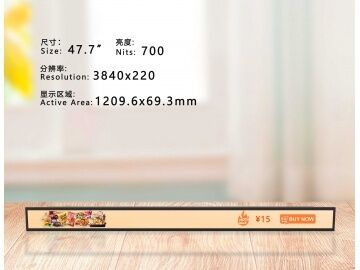 47.7-inch cutting screen, irregular screen, long strip screen, bar screen, 3840x220, brightness 700, smart shelf for supermarkets, price label display, LCD strip display.