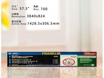 57.5-inch 1/3 split screen, irregular screen, long strip screen, bar screen, 3840*824, brightness 700, parking lot signs/outdoor, metro screen for rail transit, digital signage.