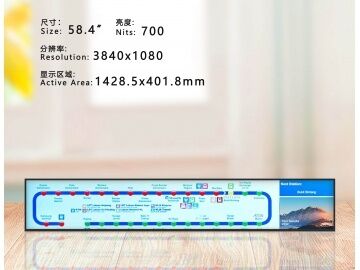 58.4-inch cut screen, non-standard screen, long strip screen, bar screen, 3840*1080, brightness 700, parking lot signage/outdoor, rail transit subway screen, digital signage.