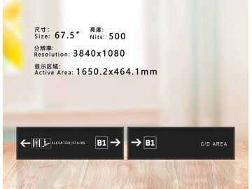 67.5-inch approximately 1/2 cut screen, bar screen, long strip screen, irregular screen, resolution 3840*1080, brightness 500, used for parking lot signage/outdoor, traffic digital signage.