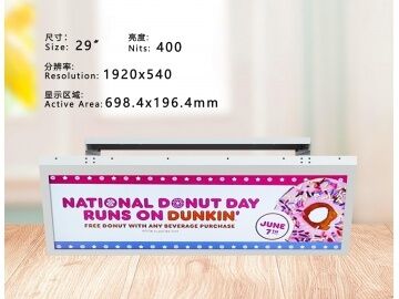28.6-inch 1/2 cut screen, irregular screen, long strip screen, bar screen, V-shaped double-sided display unit, 1920*540, brightness 400, digital shelf signage, advertising machine.