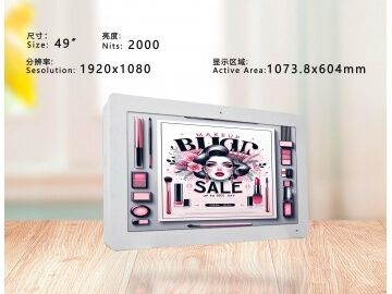 Product Label: Wall-mounted Advertising Machine Screen Quantity: Single Screen Panel Type: TFT-LCD Panel Size: 49" Aspect Ratio: 16:9 (W:H) Resolution: 1920×1080 Display Brightness: 2000 cd/m² Display Colours: 1.07B Control Type: Standalone Power Type: Built-in Power Supply Rated Voltage: AC 220V Installation Method: Wall-mounted Installation Orientation: Landscape Operating Temperature: -30 ~ 45 °C Protection Level: Front Casing:, Rear Casing: Operating Environment: Indoor Safety Certification: CCC (China).![]()