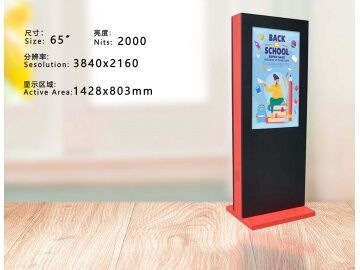 Product Label: Floor-standing Advertising Machine Screen Quantity: Single Screen Panel Type: TFT-LCD Panel Size: 65" Aspect Ratio: 16:9 (W:H) Display Colours: 1.07B Control Type: Standalone Power Type: Built-in Power Supply Rated Voltage: AC 220V Installation Method: Floor-standing Installation Orientation: Horizontal Screen Operating Temperature: -30 ~ 45 °C Protection Level: Front Case:, Rear Case: Operating Environment: Indoor Safety Certification: CCC (China)