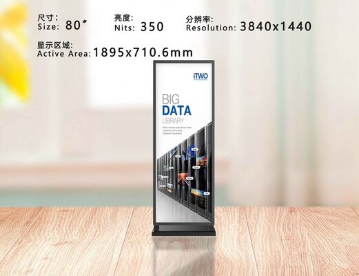 80-inch cutting screen, shaped screen, full floor-standing screen, 3840*1440, brightness 350, vertical advertising machine, full-screen LCD, digital advertising board, digital signage for retail.